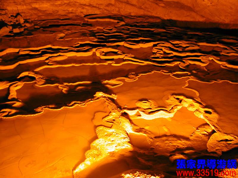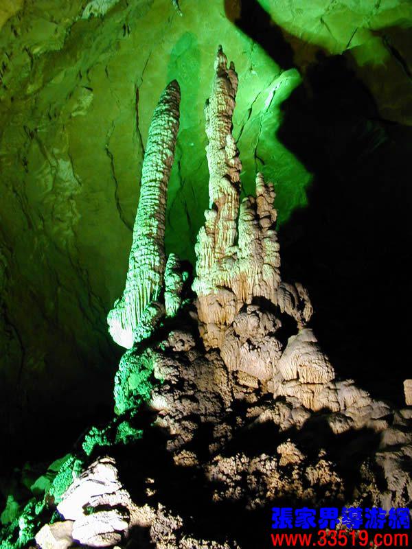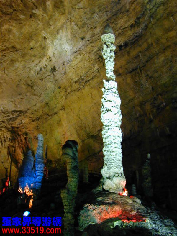 (龍宮)龍宮是黃龍洞十三個(gè)大廳中最大的一個(gè),也是景色最美的景點(diǎn)之一,底面積15000平方米,平均高40米,兩千余根石筍拔地而起,千姿百態(tài),異彩紛呈,或如飛禽走獸,或如宮廷珍藏,有的像巍巍雪松,有的像火箭升空。龍宮后園有金銀兩座花池,清水常溢,花簇盛開。宮頂鐘乳柳垂簾掛,四周壁畫栩栩如生。溶解著各色各樣的礦物質(zhì)的水,從巖層中滲透出來(lái),滴落下來(lái)。礦物質(zhì)在洞頂凝固結(jié)晶成倒懸鐘乳石,從鐘乳石滴落的水又把礦物質(zhì)澆疊、堆壘在洞底,而長(zhǎng)成節(jié)節(jié)向上的石筍。大家看看這龍宮的造型,領(lǐng)略這磅礴的氣勢(shì)。洞內(nèi)最大石筍,高12米、直徑10米的漢白玉天然石椅“龍王寶座”居高臨下,眾多石柱石筍似人似物,維妙維肖,圍著寶座朝拜山呼,幾十座珊瑚亭亭玉立,儼然一支龐大的“宮廷樂(lè)隊(duì)”。湖南著名教授羊春秋先生作《寄生草》詞對(duì)此進(jìn)行描繪:“百態(tài)千姿模樣,三宮六院門巷。龍王開宴設(shè)瓊漿,猴王偷果鬧天堂,君王納寵擁羅帳。搬演了人間爭(zhēng)攘,匯集了天下奇觀。”