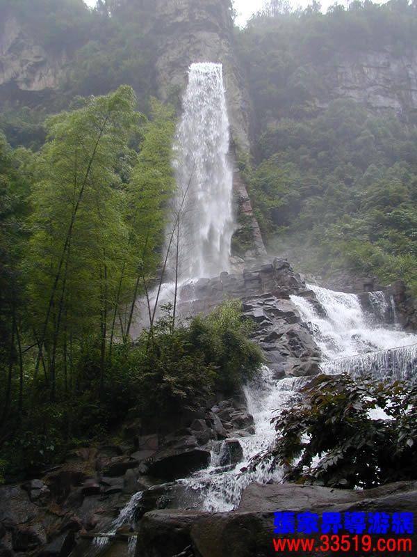 (聽瀑樓)朋友們,寶峰湖游結(jié)束了,大家一路辛苦了。現(xiàn)在,我提議到“聽瀑樓”歇歇腳,洗洗汗,聽聽音樂(lè),養(yǎng)好精神再趕路。你們看這民族式建筑,背依砂巖石峰,面朝寶峰飛瀑,登斯樓也,品土家之香茶,聽瀑布之濤聲,此情此景,怎不令人感嘆人與自然傾心交談的空靈境界?