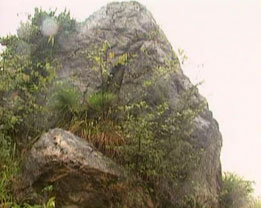 有一天傍晚,王家夫婦正在屋前坪上收稻谷,他倆疼愛的三歲小孩剛從大門里爬出來(lái),就被孽龍一陣風(fēng)卷了去。忽聽云中大喝一聲:“孽畜,不得作惡!”孽龍?zhí)ь^看見觀音菩薩駕云到此,大吃一驚。但他好久未吃東西了,想先吃了再說(shuō),便張開大嘴,將小孩往口中送。觀音菩薩拂塵一指,將孽龍定住,又用手一招,把嚇得半死的小孩拖于懷中,怒斥孽龍道:“你這孽障,作惡多端,如不皈依,修成正果,永不出潭。”說(shuō)罷,口中念念有詞,拂塵一掃,將孽龍打入潭中,并移來(lái)一塊兩丈來(lái)高的大石,壓在潭口上,鎮(zhèn)住孽龍。