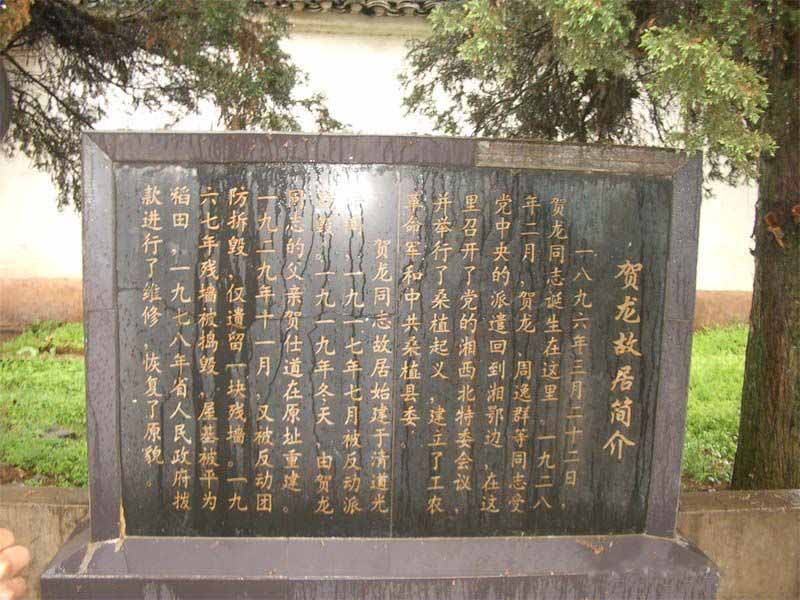 為了紀(jì)念偉大的革命元帥。1977年省縣兩級政府撥款,賀龍故居按舊居原貌修復(fù)的。賀龍紀(jì)念館于1996年3月25日賀龍誕辰100周年之際竣工落成,大門上首的墨色大理石匾額上,是江澤民親筆題寫的“賀龍紀(jì)念館”幾個燙金大字。。賀龍紀(jì)念館與賀龍故居、賀龍橋成犄角之勢。