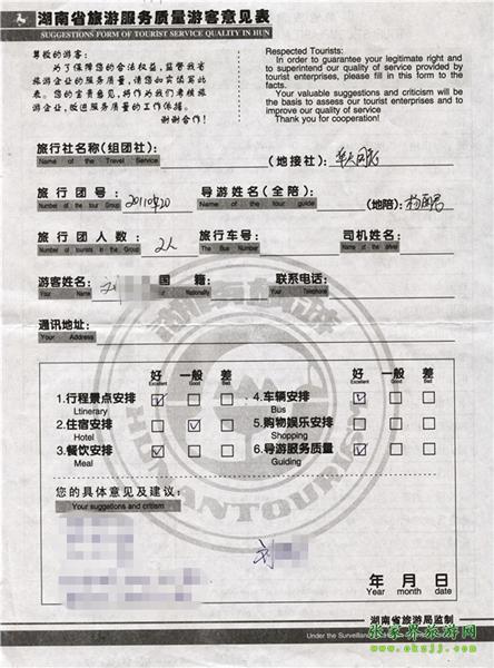 - 2011年10月26日張小姐一行18人旅游質(zhì)量反饋 [10482]