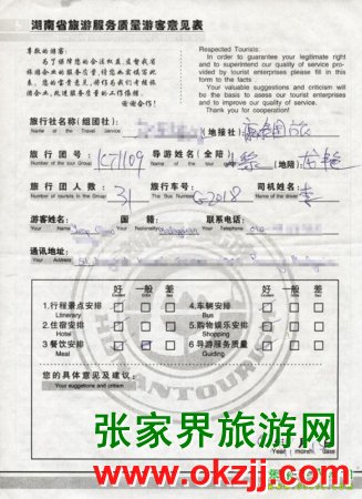 2009年11月9日馬來西亞yeap先生一行31人旅游接待質量反饋單: