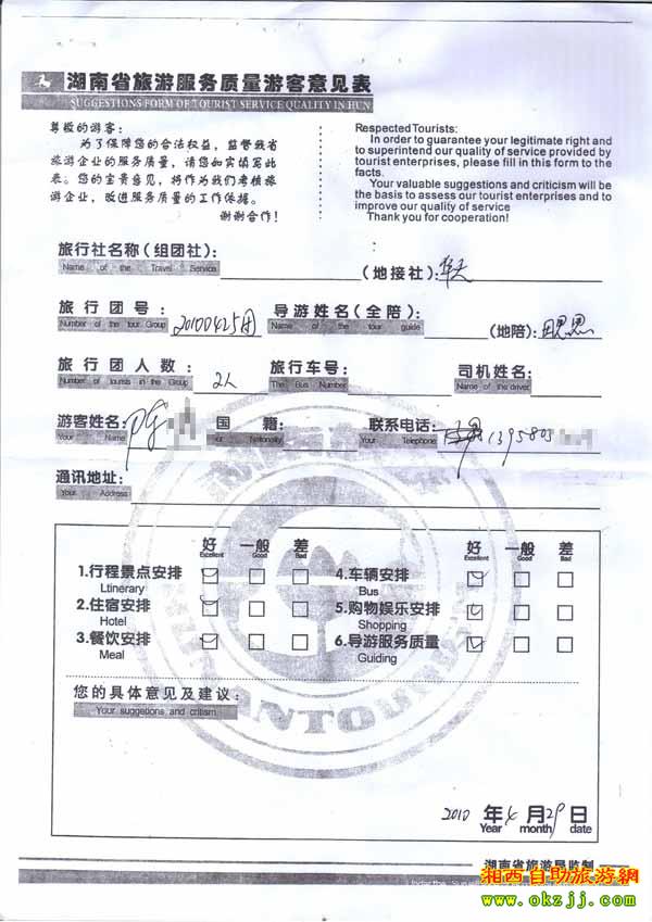 2010年4月29號陳先生旅游質量反饋