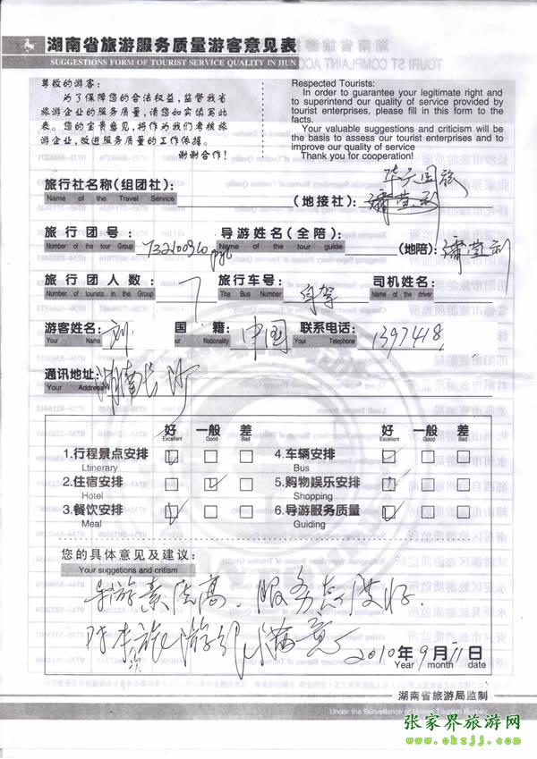 - 游客夏先生為表?yè)P(yáng)導(dǎo)游李姣姣寫來表?yè)P(yáng)信致我張家界... [14811]