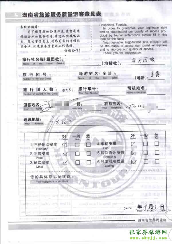 2010年8月13日黑廣東高先生一行13位旅游質(zhì)量反饋