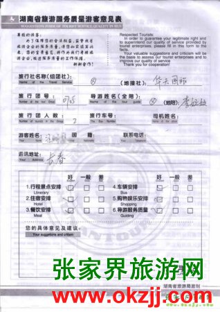 2010年7月9日長春汪先生一行2位旅游質(zhì)量反饋