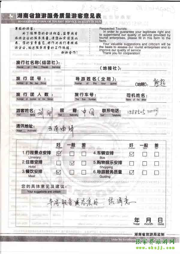 - 游客夏先生為表?yè)P(yáng)導(dǎo)游李姣姣寫來表?yè)P(yáng)信致我張家界... [14811]