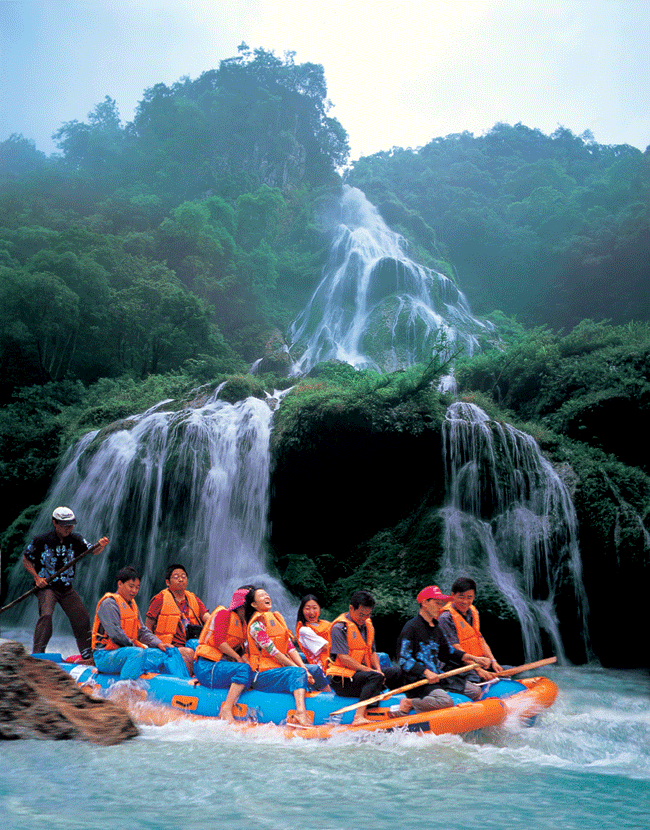 到了大門口,彭導幫我們?nèi)ベI了門票,248元/人,共花去496元。彭導先前給我們預算是,按最經(jīng)濟的帳目來算的,470元/人(包括進山大門票,但不包括索道、天梯、酒水等),他說出門在外,能節(jié)約點就節(jié)約點。當然他也知道我們可能會超出這個標準,如果有必要,到時可以再自己花費。買了門票后,我給了他500塊,算是這幾天的費用,他說,不是說好是每人470的嗎,你應該是給我444塊。我說,上次謝謝您的關(guān)心,這次不能讓你太吃虧了。彭導說,那今天晚上我叫店家給你們加個菜,呵呵呵。 下午,我們玩了森林公園中的黃石寨和金鞭溪??戳颂鞎鴮毾?、點將臺、南天柱、摘星臺、六奇閣,五指峰、金鞭溪、金鞭巖、文星巖、紫草潭、千里相會等,彭導果然是彭導,有著二十年的導游經(jīng)驗的他就是不同凡響啊,個個景點都是如數(shù)家珍,說得是頭頭是道。(據(jù)網(wǎng)上說,有些導游是只帶路不講解,讓人只是看看表面,而無法去領(lǐng)略張家界那些精美絕倫的凄美傳說。我個人認為張家界的傳說也是應該值得每一個游人去了解,去領(lǐng)略的,如果你來張家界沒有聽到這些傳說的話,那一是你的導游的水平問題,二是你的一個很大的遺憾,你來張家界的經(jīng)歷是不完美的),什么龍蝦花的來歷,金鞭巖的前身,秦始皇和孟姜女與張家界的關(guān)系。晚上乘百龍電梯上袁家界(張家界的核心)一家旅館住宿。晚餐時,一葷一素一湯。我們吃著吃著,老板笑咪咪的搬上一鍋火鍋,當?shù)氐耐岭u火鍋。我們很詫異,我說,我們沒有點這個菜啊!老板,你是不是弄錯了?老板說,這是你們彭導叫我特地做的。我突然明白了,一定是彭導是為我多給的那50多塊錢了。由于長途奔波,加上下午又走了很多路,晚上洗了一個澡就睡下了。山里的氣溫很低,在這全國都如火爐時,張家界的晚上卻要蓋很厚的被子,真是一塊寶地啊。 第二天早上,我們參觀了袁家界的風景,其中最有名的當然數(shù)天下第一橋,這是由兩座巖石山的山頂自然生長在一起,非人所能為也。天下第一橋的稱號當之無愧啊。當然在袁家界,后花園也是不能不看的。張家界號稱“峰三千,水八百”,在這里你就能明顯的感覺到這句話的前半句是那么的實在??赐陱埣医绲暮诵脑医?,我們乘車到了天子山(張家界景區(qū)內(nèi)的最高的地方)。玩了賀龍公園、御筆峰、仙女散花、西海、石船出海、仙人橋、天子廟、十里畫廊、一步難行。不巧的是,那天山上下了一點陣雨,雨后一條彩虹掛在天上,更重要的是山上起了一點霧,使整座山都籠罩在霧中,若隱若現(xiàn),看上去就象是在云海中,好象老天特地配合我們似的,難得一見的西海等正好被我們趕上了。彭導告訴我們,這樣的機會是很難得的,可能是張家界為了感謝我的再次到來,給了我一個特別的禮物吧。我大笑。晚上趕到昨天住的地方去住宿。不提。 第三天我們玩了烏龍寨、三道鬼門關(guān)、天波府、一步登天、空中走廊等。主要是在楊家界的景區(qū)范圍內(nèi)。本來是第三天下午要去鳳凰的,但是考慮到我和女友小嵐好容易來張家界一次,盡量將張家界的能玩的地方去玩一下。我也曾聽說張家界不僅峰三千,水八百,同時天然溶洞也是非常不錯的,據(jù)說其中一個溶洞為一根鐘乳石投保了1個還是2個億,(不怎么記得了,呵呵。)而且在張家界的宣傳資料上還看到了有漂流,打水仗等非常刺激的項目。我于是問一下彭導,能否幫我們聯(lián)系一下,彭導很爽快的答應了,他幫我們聯(lián)系了九天洞和茅巖河的公司。在彭導的上下打通下,本來是315元/人的行價,硬是給用278元/人的價格給拿下了。當搞定這些時,已經(jīng)外面是天黑一片了(彭導家就在楊家界)彭導說他想回家看看,明天我們會和一群人去看洞和漂流,他就不陪我們?nèi)チ?,明天下午他會在張家界市區(qū)去接我們,到時會有車送我們?nèi)ナ袃?nèi)。然后他會送我們上去鳳凰有車,并幫我們?nèi)ヂ?lián)系鳳凰的朋友來招待我們。 第四天,清晨我們便踏上了汽車去看洞漂流。號稱亞洲第一大洞的九天洞果然是名不虛傳,我們把它現(xiàn)在開發(fā)的部分粗略的走了一下,就花了我們近月4個小時,洞中鐘乳石遍地,在五彩斑闌的燈光下,顯得晶瑩剔透,閃閃發(fā)光,讓人感覺到是到了水晶宮一般,地下還有陰河,遠處通知海(據(jù)說)。對了,洞中溫度很低,常年在10多度。讓人在其中感覺到一陣陣寒意。故想進去的朋友記得多穿點衣服,以免著涼,切記。我們當時就是吃了很大的虧,從洞中出來時,小嵐就在點喀漱。下午來到茅巖河漂流。上船前看到有人賣水瓢,心中不免奇怪。雖說,張家界金鞭溪的水可以喝,但也不是每一條河的水都能喝啊?于是上前去問,一打聽才知道,這瓢不是用來舀水喝的,而是用來打水仗的。本來因為小嵐有點小感冒,我們打算保持中立,但一看到各位船友們個個磨拳擦掌,人手一把瓢或者水槍(這是當?shù)厝擞弥褡幼龅囊环N土水槍),還且對我們是虎視眈眈,我想我參加是不成了。于是我們也花了幾塊錢買了兩把。船開動后,大家開始時還是比較興奮,不時用瓢來劃一下船,但是沒多久,大家就開始尋找新的開心方式了,于是大家都開始蠢蠢欲動了,大家也都不客氣,不管別人是否作好應戰(zhàn)準備,反正是先下手為強,其中一條船首先開火,于是大家都沒有在乎什么了,見著在自己的攻擊范圍內(nèi)的非本船