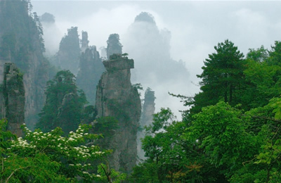 第二天 游覽世界峰林奇觀森林公園(248元已含,兩天有效)—天子山景區(qū):西海、天臺、仙女獻花、御筆峰、賀龍公園、臥龍嶺、十里畫廊,中途參觀百丈峽,住武陵源索溪峪